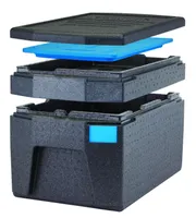 Wykonane z ekspandowanego polipropylenu (EPP) o wysokiej odporności na uszkodzenia mechaniczne i warunki atmosferyczne, bez CFC, w 100% nadające się do recyklingu. Nadaje się do mycia w zmywarce. Płyta chłodząca Camchiller®, GN 1/1 (CP3253443) nie jest dołączona do zestawu.