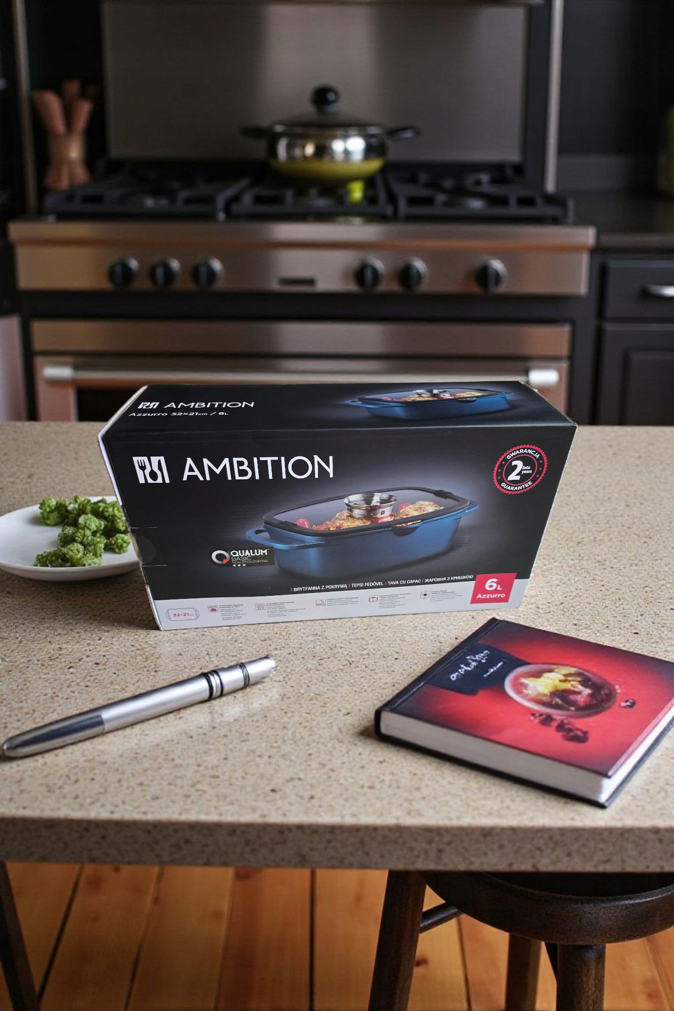 Azzurro Brytfanna głęboka z pokrywą 6,0l Ambition Indukcja Piekarnik 32x21