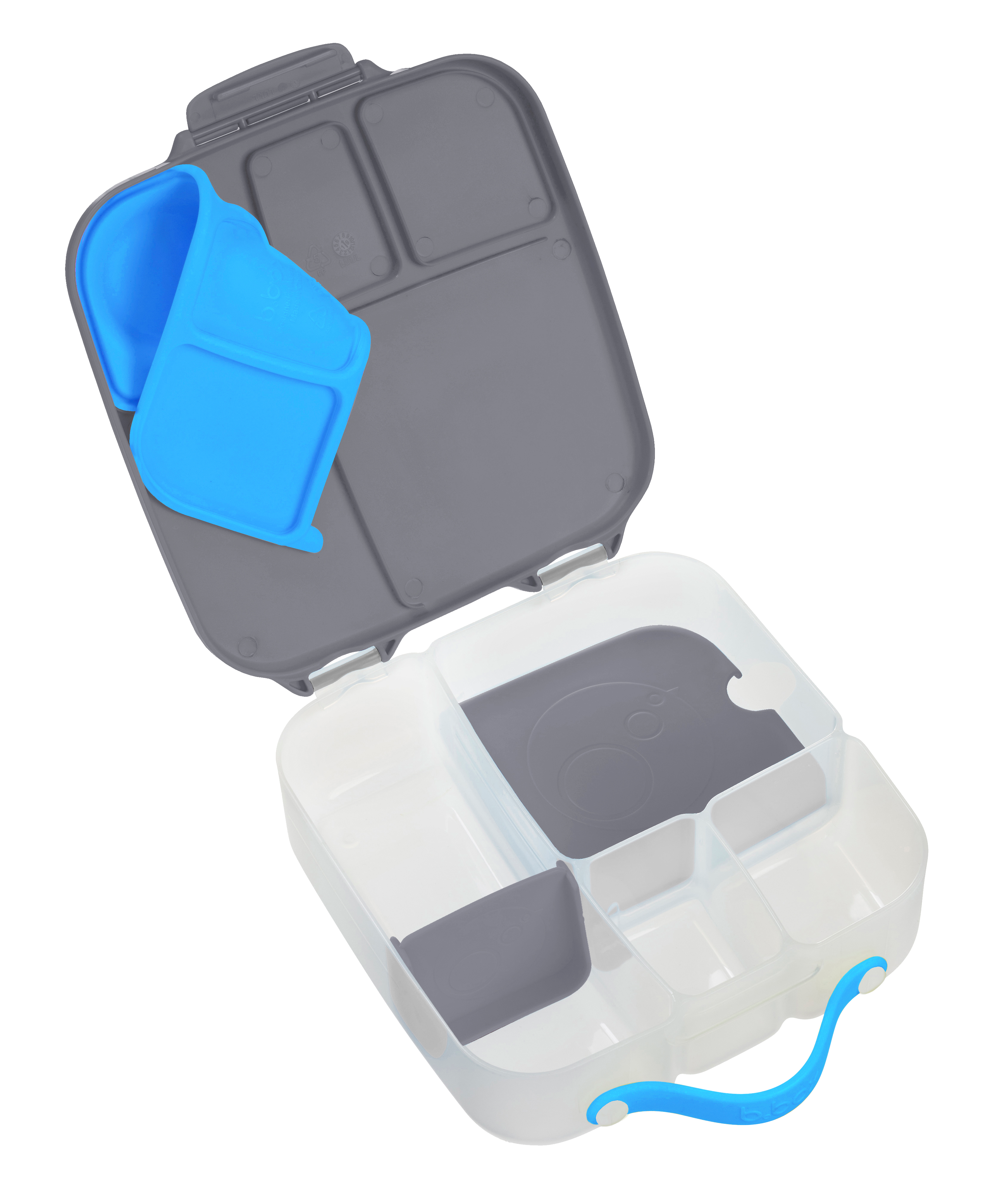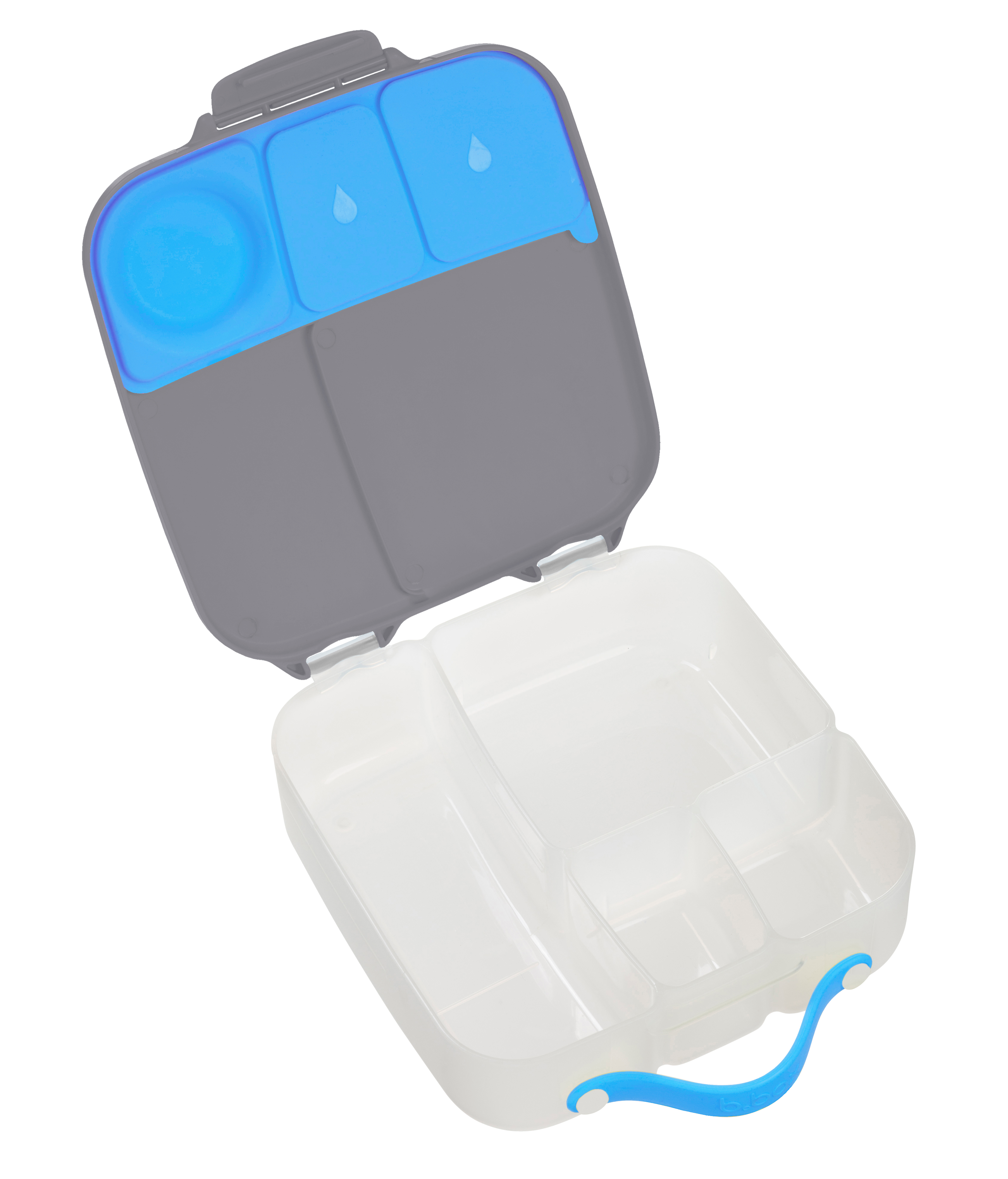 Duży lunchbox b.box jest produktem funkcjonalnym i wygodnym w użytkowaniu. Do przenoszenia służy poręczny uchwyt. Klips zamykający dobrze trzyma a jednocześnie z łatwością daje się otworzyć nawet przedszkolakom. Także mycie nie nastręcza kłopotów. Nie ma tu trudno dostępnych zakamarków, ruchome przegrody są wyjmowane a silikonowa uszczelka na pokrywce zdejmowana. Dzięki temu szybko i dokładnie umyjesz i osuszysz lunchbox. Pudełko z jedzeniem możesz także schować do lodówki.