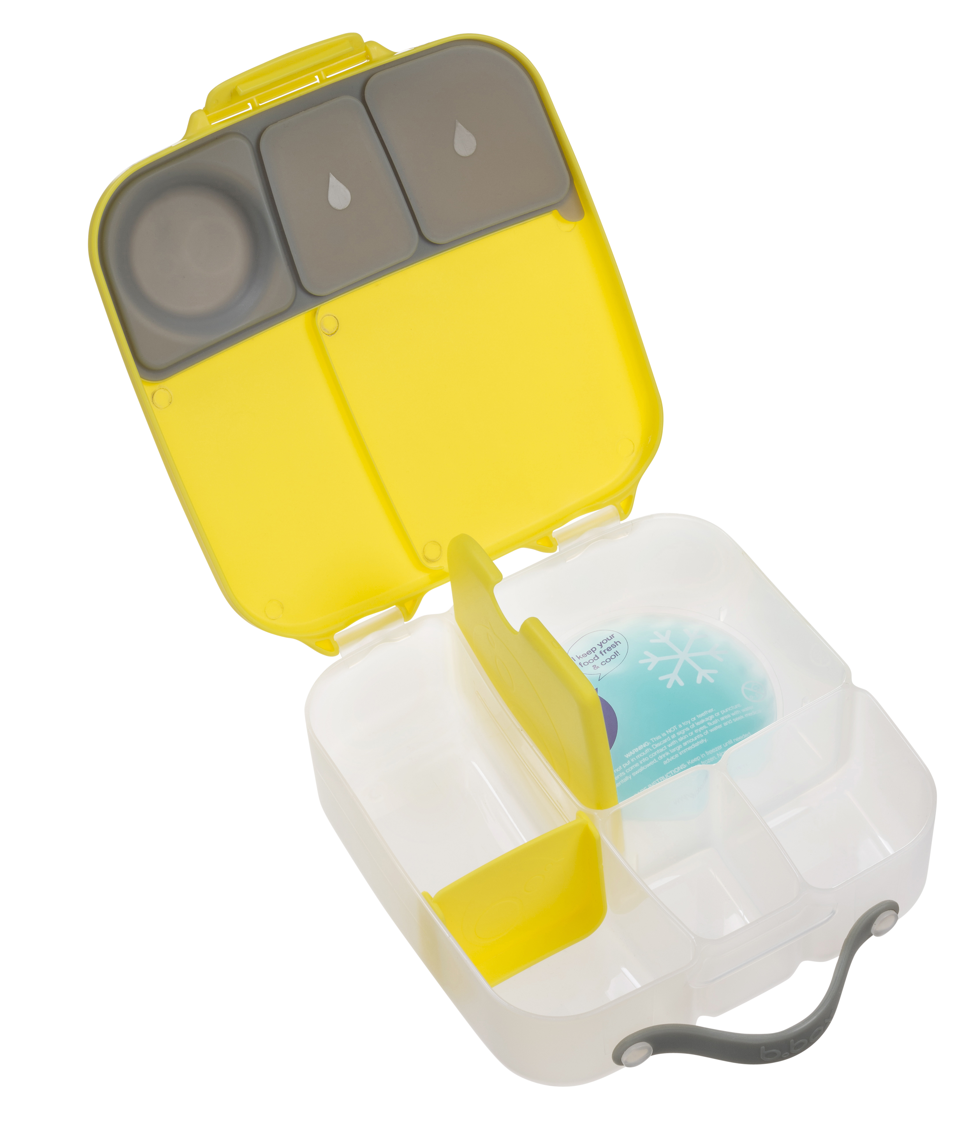 To pudełko śniadaniowe z poręcznym uchwytem skrywa w sobie małe i duże przegrody, dzięki którym zapakujesz dziecku do szkoły lub na wycieczkę jego ulubione potrawy i przekąski. Lunchbox b.box ma kilka sprytnych rozwiązań. Ruchome przegrody, które można przestawiać lub wyjąć by zmieścić w pudełku całego banana lub jabłko. Dużą kwadratową przegrodę w sam raz na apetyczny makaron z warzywami lub kanapki. Ta przegroda ma praktyczny "patent". Podwójne dno, pod które możesz schować dołączony do zestawu wkład chłodzący. Dzięki niemu produkt w przegrodzie dłużej pozostanie chłodny i świeży. Rozwiązanie idealne szczególnie gdy za oknem słońce i wysokie temperatury. Silikonowa uszczelka przykrywająca mniejsze przegródki umożliwi przenoszenie w nich miękkich soczystych owoców, jogurtu lub dipu do warzyw. Jednym słowem, przygotowując dziecku drugie śniadanie, lunch czy prowiant na wycieczkę nie musisz rezygnować z różnorodności i właściwego zbilansowania posiłku.