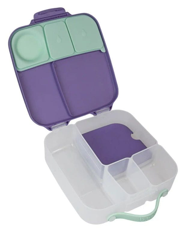 Duży lunchbox b.box jest produktem funkcjonalnym i wygodnym w użytkowaniu. Do przenoszenia służy poręczny uchwyt. Klips zamykający dobrze trzyma a jednocześnie z łatwością daje się otworzyć nawet przedszkolakom. Także mycie nie nastręcza kłopotów. Nie ma tu trudno dostępnych zakamarków, ruchome przegrody są wyjmowane a silikonowa uszczelka na pokrywce zdejmowana. Dzięki temu szybko i dokładnie umyjesz i osuszysz lunchbox. Pudełko z jedzeniem możesz także schować do lodówki.