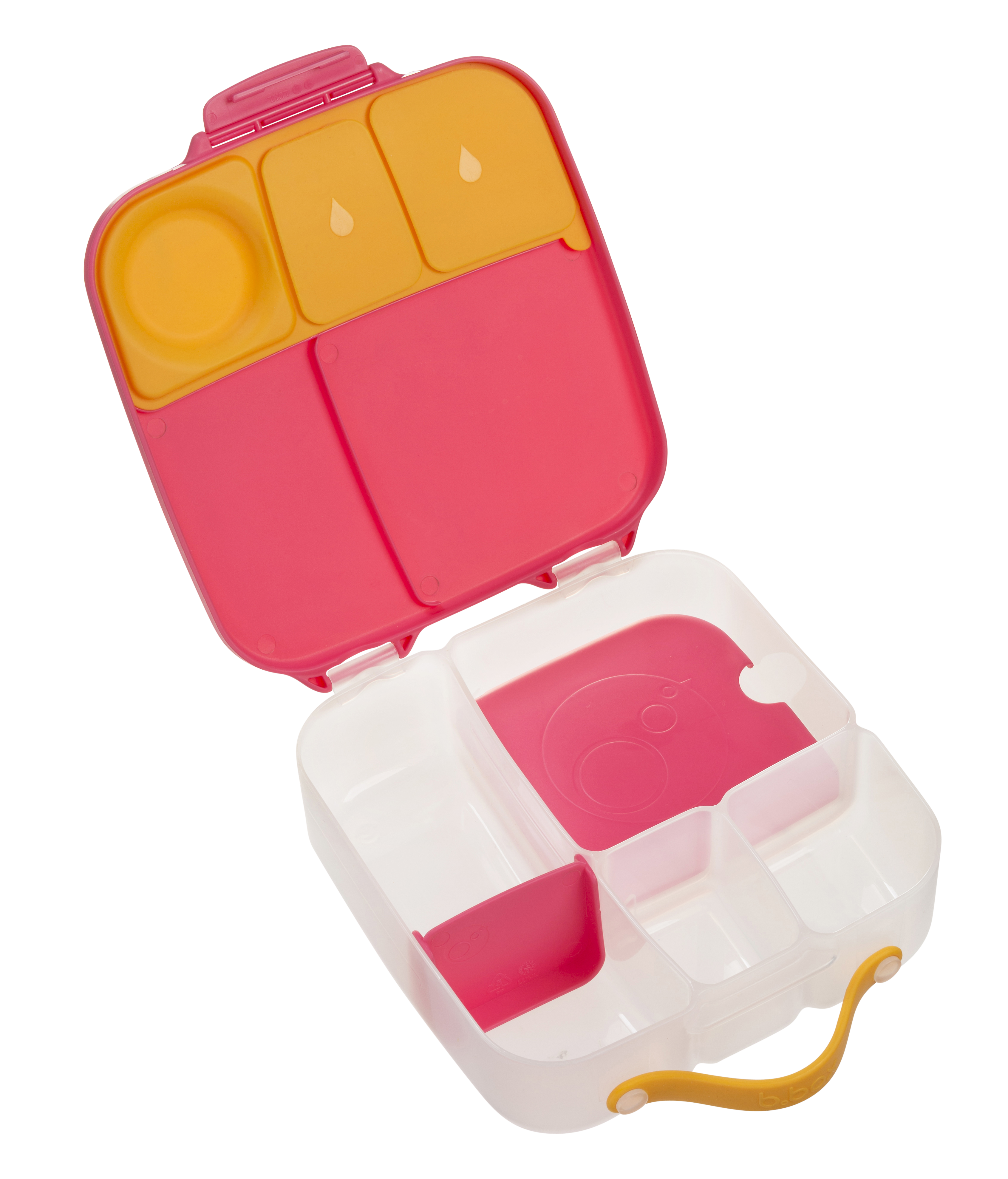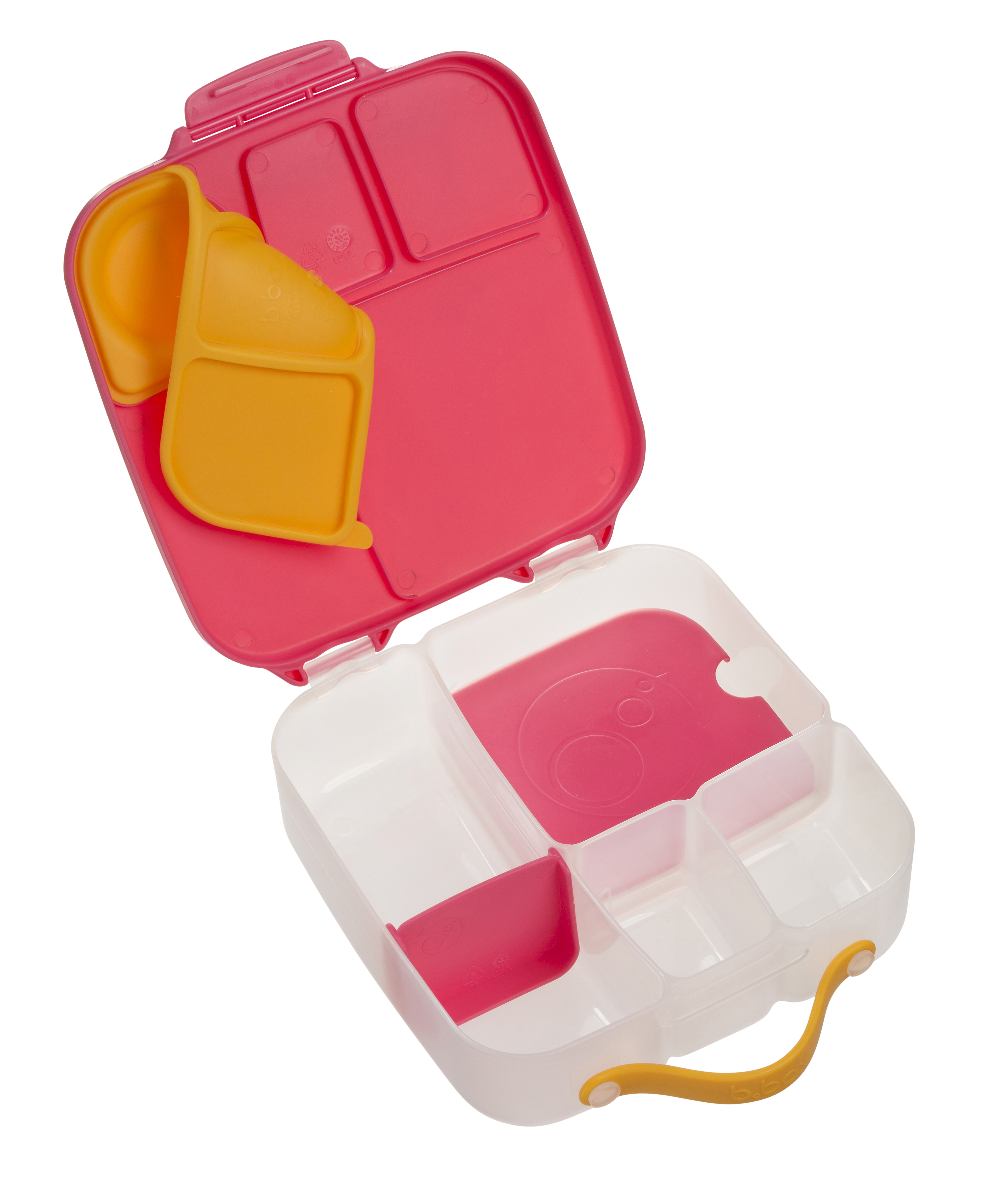 Duży lunchbox b.box jest produktem funkcjonalnym i wygodnym w użytkowaniu. Do przenoszenia służy poręczny uchwyt. Klips zamykający dobrze trzyma a jednocześnie z łatwością daje się otworzyć nawet przedszkolakom. Także mycie nie nastręcza kłopotów. Nie ma tu trudno dostępnych zakamarków, ruchome przegrody są wyjmowane a silikonowa uszczelka na pokrywce zdejmowana. Dzięki temu szybko i dokładnie umyjesz i osuszysz lunchbox. Pudełko z jedzeniem możesz także schować do lodówki.