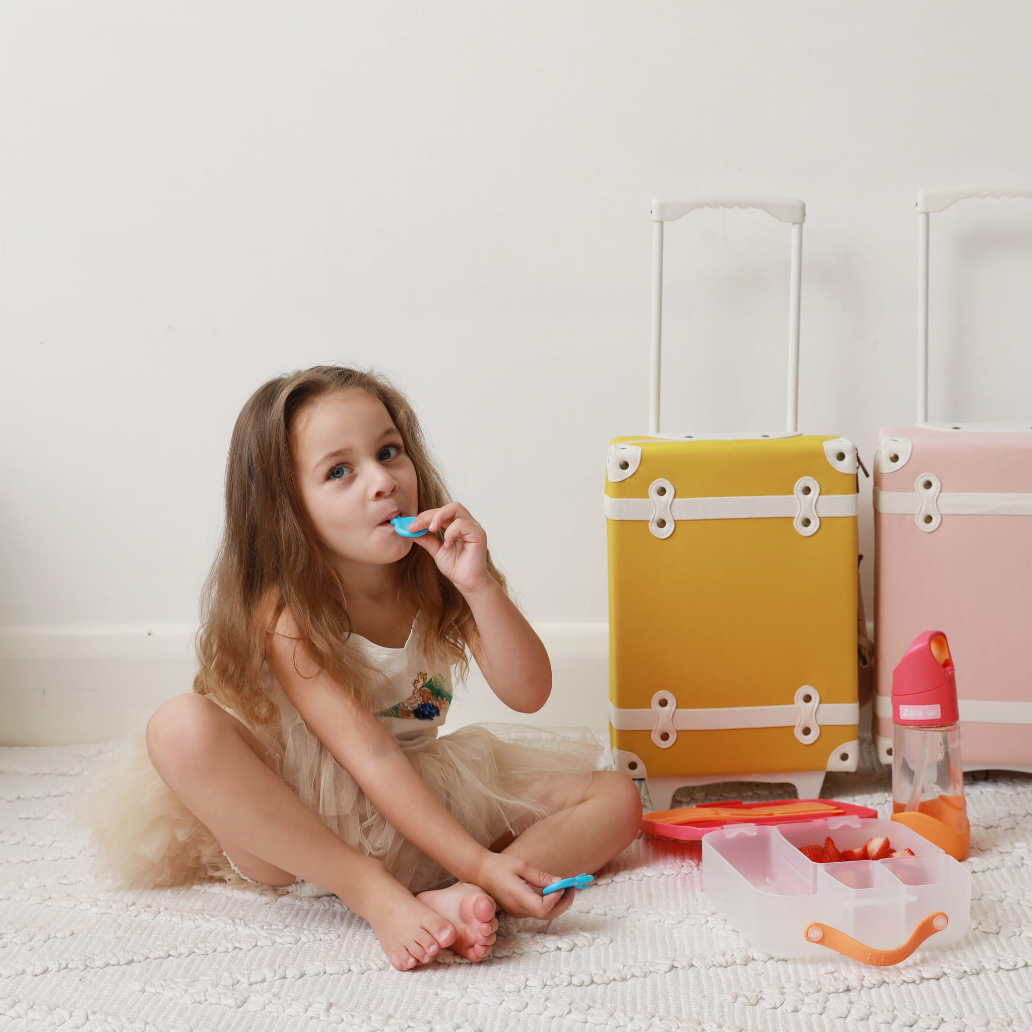 To pudełko śniadaniowe z poręcznym uchwytem skrywa w sobie małe i duże przegrody, dzięki którym zapakujesz dziecku do szkoły lub na wycieczkę jego ulubione potrawy i przekąski. Lunchbox b.box ma kilka sprytnych rozwiązań. Ruchome przegrody, które można przestawiać lub wyjąć by zmieścić w pudełku całego banana lub jabłko. Dużą kwadratową przegrodę w sam raz na apetyczny makaron z warzywami lub kanapki. Ta przegroda ma praktyczny "patent". Podwójne dno, pod które możesz schować dołączony do zestawu wkład chłodzący. Dzięki niemu produkt w przegrodzie dłużej pozostanie chłodny i świeży. Rozwiązanie idealne szczególnie gdy za oknem słońce i wysokie temperatury. Silikonowa uszczelka przykrywająca mniejsze przegródki umożliwi przenoszenie w nich miękkich soczystych owoców, jogurtu lub dipu do warzyw. Jednym słowem, przygotowując dziecku drugie śniadanie, lunch czy prowiant na wycieczkę nie musisz rezygnować z różnorodności i właściwego zbilansowania posiłku.
