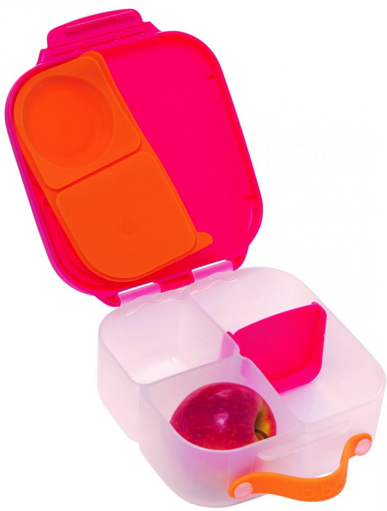Mini lunchbox b.box jest zgrabny i poręczny. Dziecko może wygodnie trzymać go w dłoni dzięki zintegrowanemu uchwytowi ale także, może wsunąć go do plecaka lub torby. W sam raz do szkoły, gdy jest mniej lekcji lub na krótką wycieczkę i dłuższy spacer.