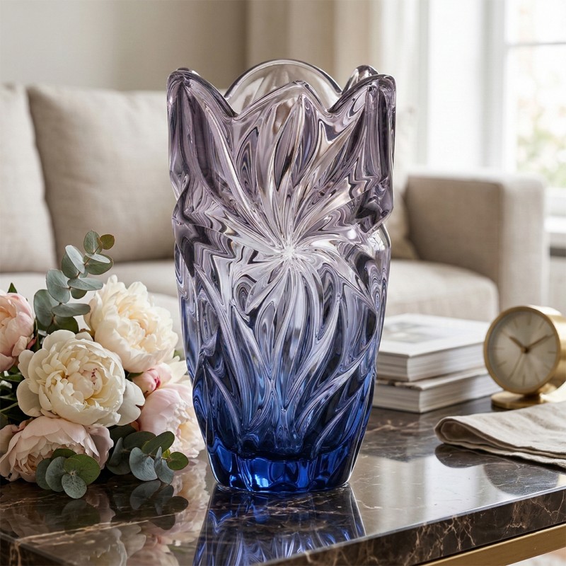 Wazon Kryształowy FLORA BLUE GRADIENT 280 mm – Ekskluzywny Wazon Dekoracyjny