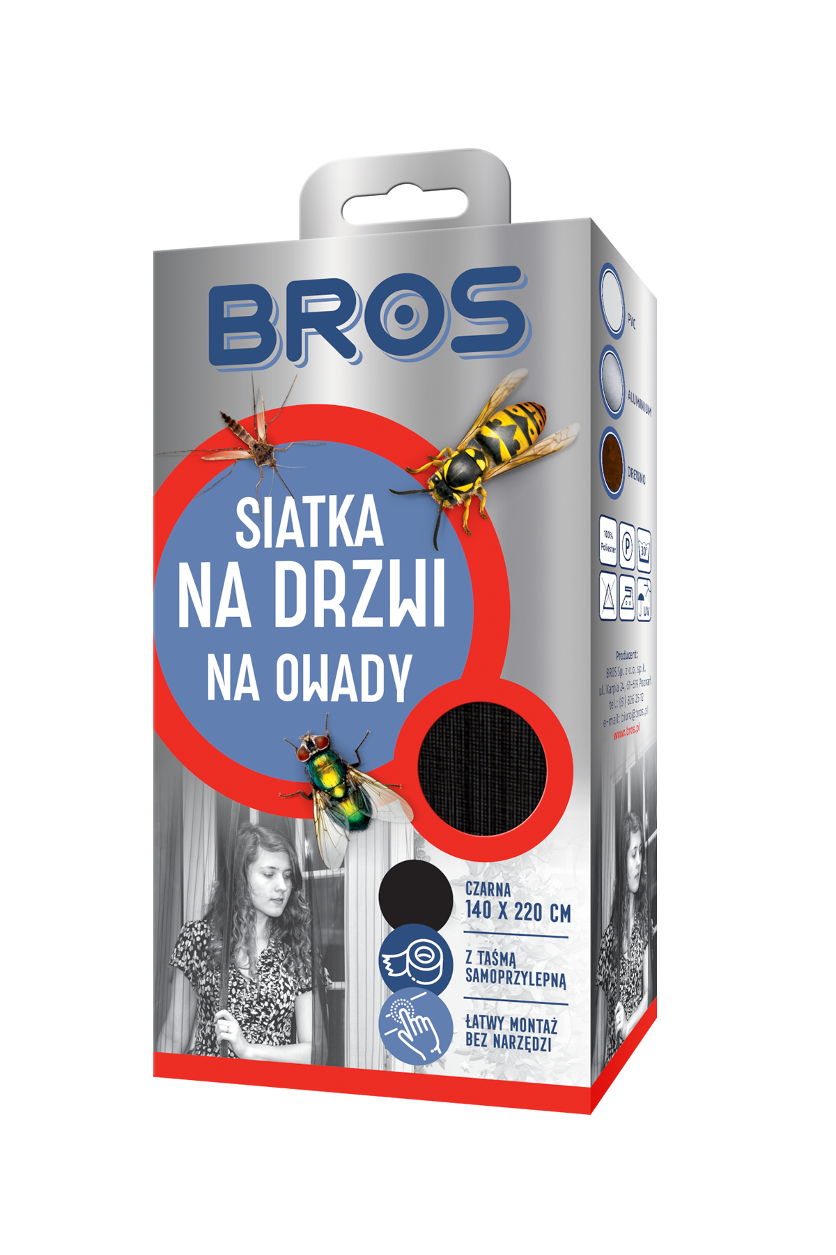 BROS Siatka na drzwi przeciw owadom czarna 140x220