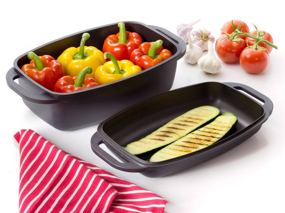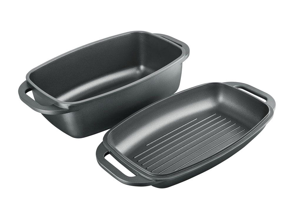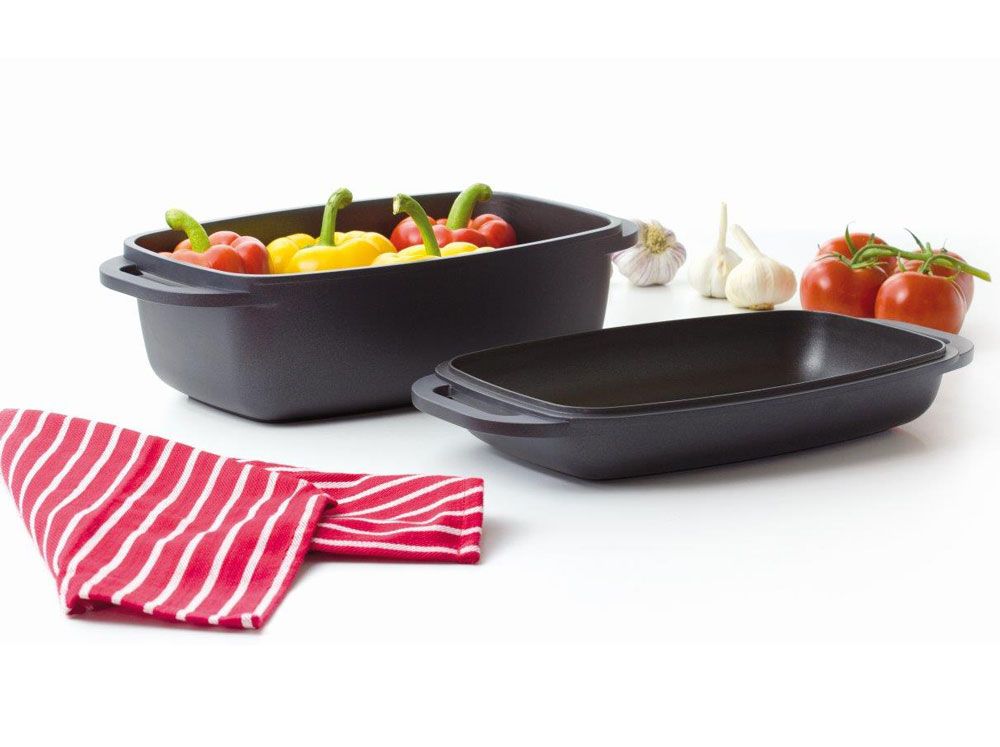 Brytfanna prostokątna 2w1 to uniwersalne naczynie w każdej kuchni.Zarówno brytfanna, jak i pokrywa przystosowane są do używania w piekarniku, ale także na wszystkich typach kuchenek, w tym indukcyjnych.