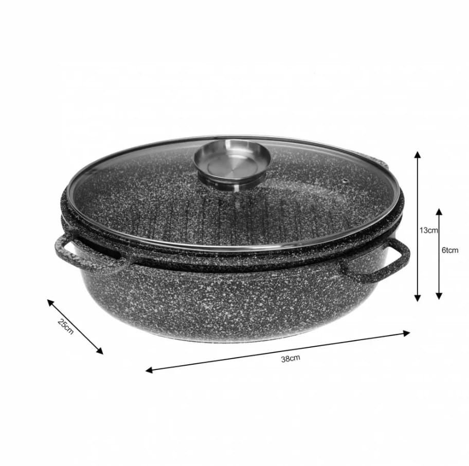 -Wymiary patelni grillowej: 38 x 26cm/ wysokość 5,4cm