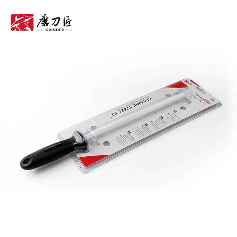 Doskonała ostrzałka ceramiczna do szybkiego podostrzania i wyrównywania krawędzi ostrzącej noża. W trakcie pracy ostrze jest ponownie wyrównywane i polerowane. Ostrzałka jest lekka i doskonale zbalansowana. Rękojeść została odpowiednio wyprofilowana tak, aby nie wysuwała się podczas pracy z ręki. Otwór do powieszenia ostrzałki umożliwia jej łatwe przechowywanie. Odpowiednia dla osób prawo- i lewo-ręcznych..