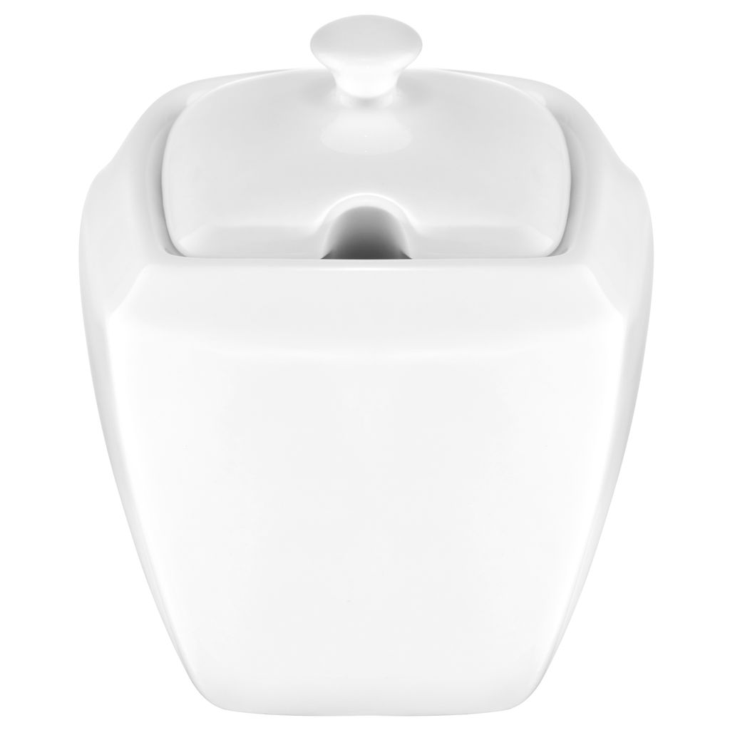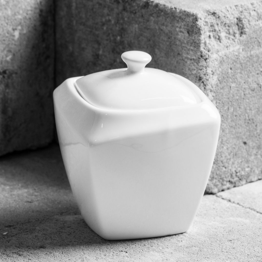 Elegancka cukiernica z kolekcji Monaco marki Ambition została wykonana z wysokiej jakości porcelany New Bone China, charakteryzującej się wyjątkową trwałością i odpornością na obtłuczenia oraz wysokie temperatury. Jej minimalistyczny, geometryczny kształt oraz połyskująca biel doskonale prezentują się na każdym stole, tworząc spójny komplet z pozostałymi elementami kolekcji.