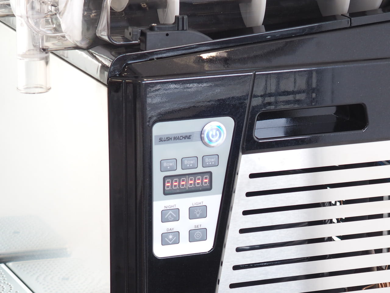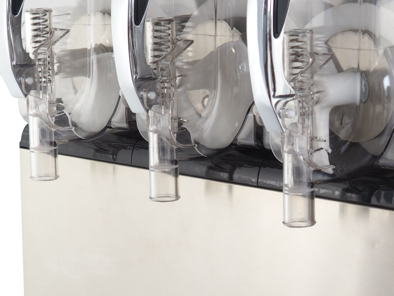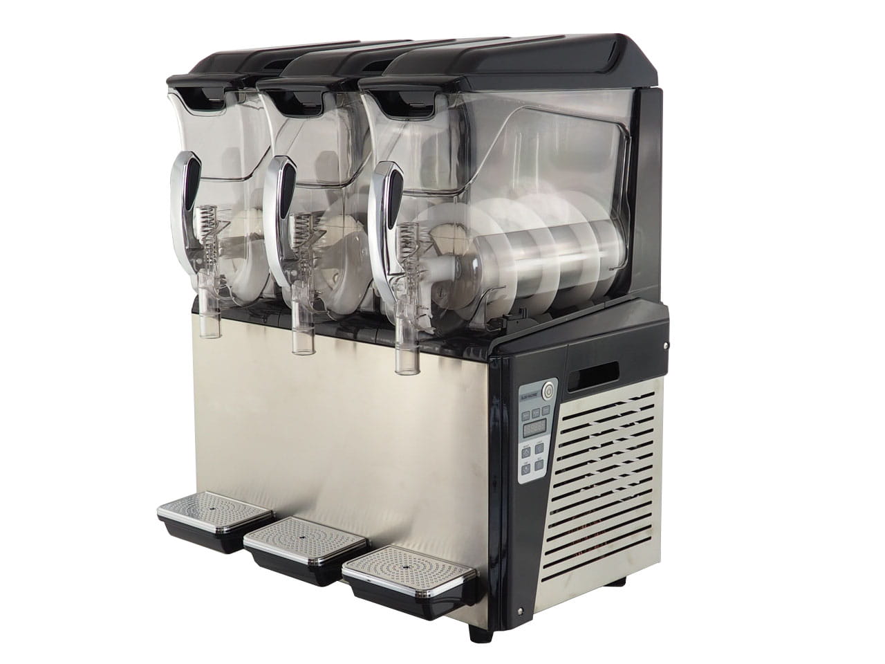 Trzy komory pracy o pojemności 10L każda mogą być trzema różnymi kolorami, co dodatkowo zwiększa atrakcyjność punktu serwującego slushie. Trzy różne smaki to trzykrotnie większa szansa na to, że Klient zdecyduje się na któryś z nich! Sterowanie urządzeniem jest bardzo łatwe i intuicyjne, a proces mieszania dokładny i pozwala na uzyskanie perfekcyjnej konsystencji.