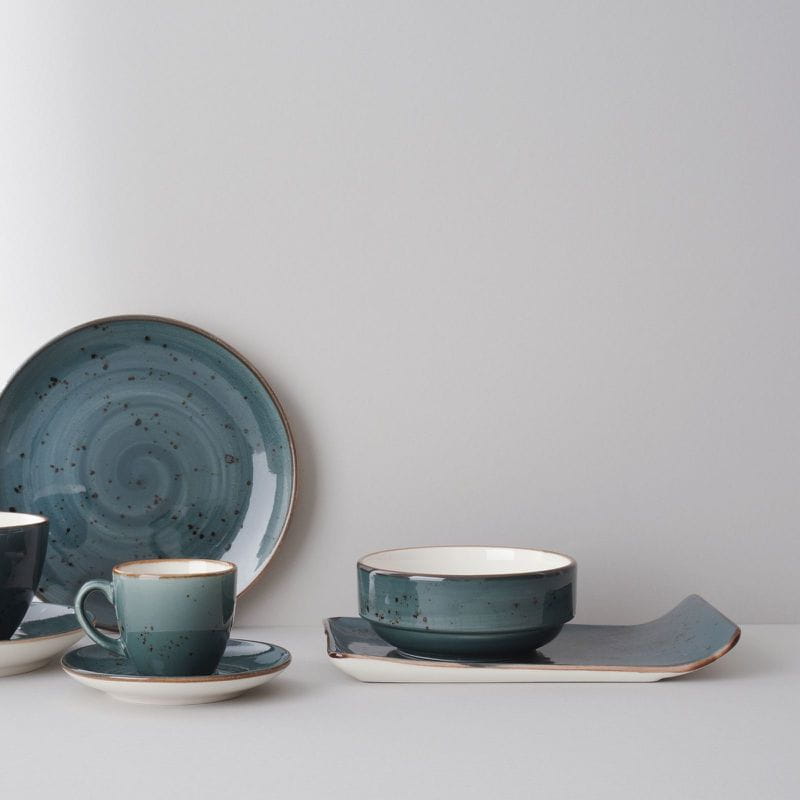 Bogata kolekcja ręcznie zdobionej porcelany w czterech soczystych kolorach.