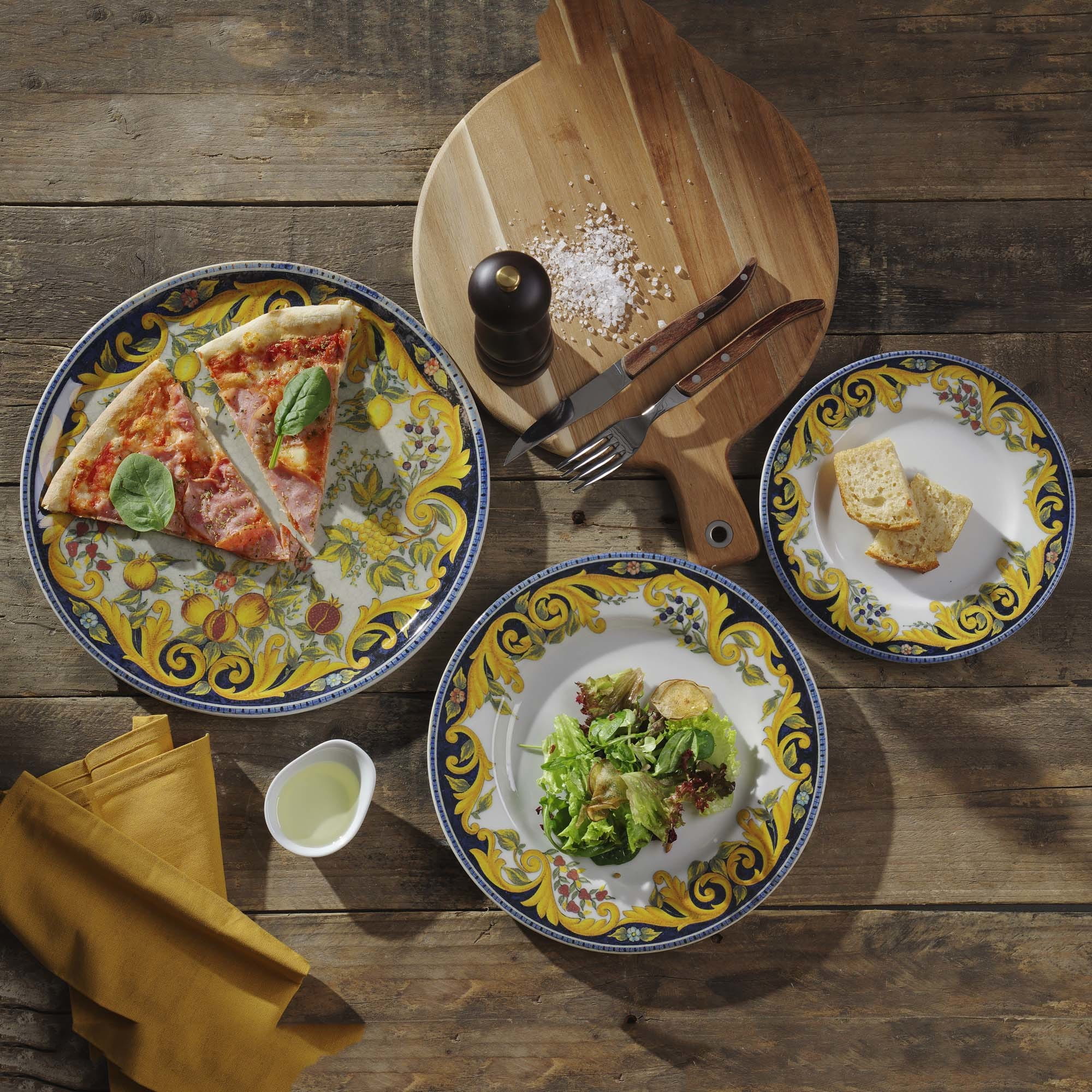 Z myślą o tym, że pizza to żelazna pozycja wielu kart dań, stworzyliśmy kolekcję Speciale, która łączy jakość z przystępną ceną. Wykonane z bardzo wytrzymałej porcelany, doskonale sprawdzą się w trudnych warunkach profesjonalnego użycia. Śnieżnobiałe talerze dostępne w rozmiarach 28 i 33 cm zostały uzupełnione elementami w modnych kolorach, które doskonale ze sobą współgrają i podkreślają wygląd dania. Dekoracje są wykonane pod szkliwem, dzięki czemu bez obaw można je myć w zmywarkach i używać w kuchenkach mikrofalowych.
