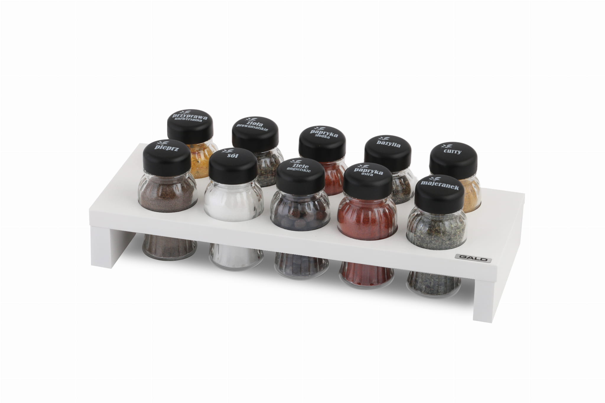 GALD HAGE organizer na przyprawy 10el biały + czarne nakrętki