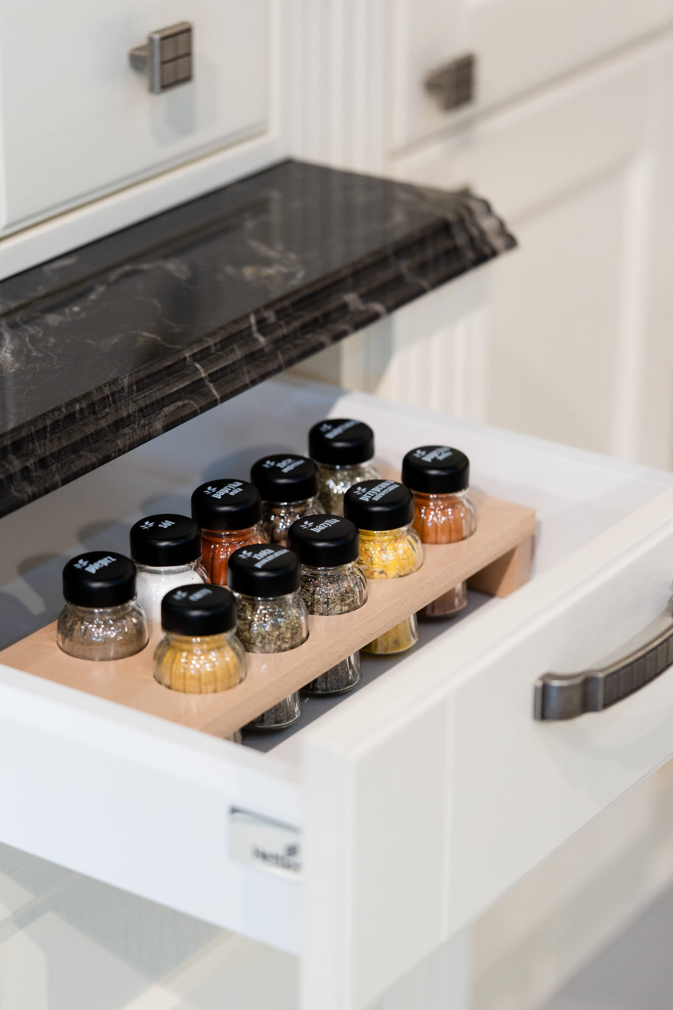 Nowoczesna, funkcjonalna a zarazem elegancka forma, pozwala na postawienie organizera na blacie kuchennym, umieszczeniu go w szafce, szufladzie lub cargo. Każde rozwiązanie wprowadzi ład i porządek, dodatkowo usprawni i umili kuchenne czynności związane z wykorzystaniem aromatycznych przypraw, tak byś mógł bez przeszkód cieszyć się przygotowywaniem ulubionych potraw. Wszystkie przyprawy w jednym miejscu, zawsze po ręką.