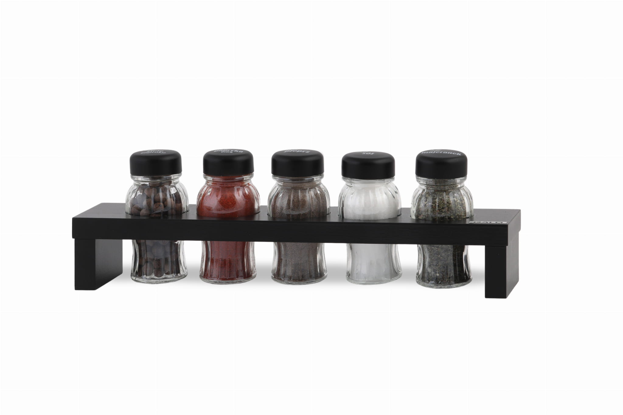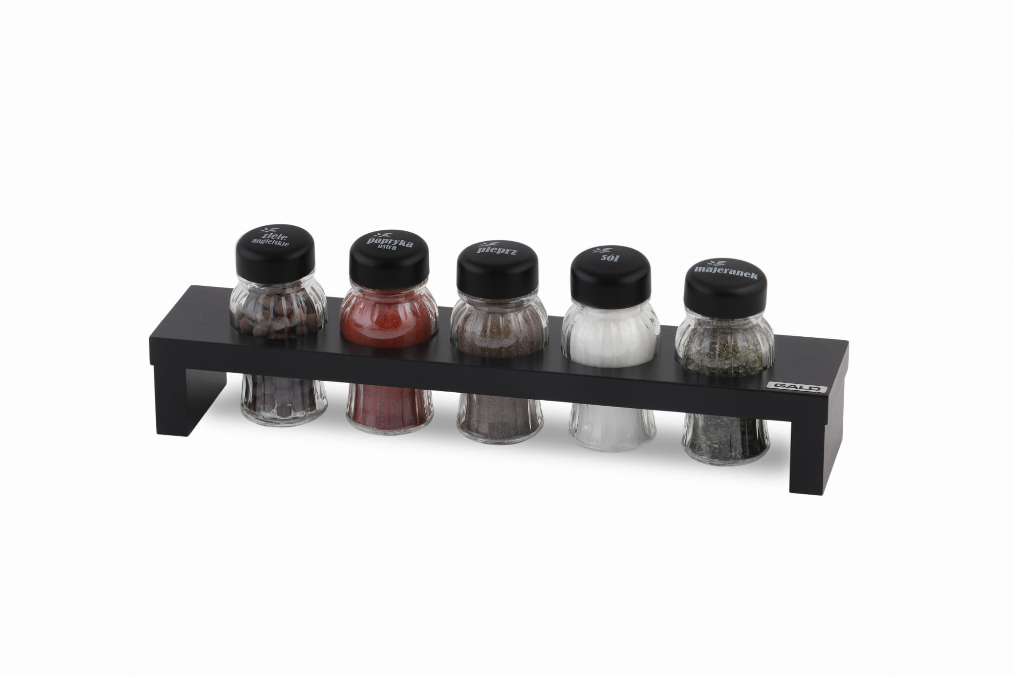 GALD HAGE organizer na przyprawy 5el czarny + czarne nakrętki