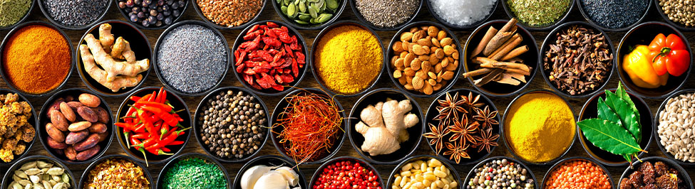 Zestaw pomieści 12 różnych przypraw, takich jak: