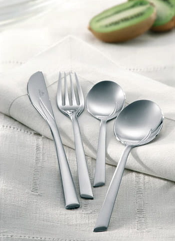 "W wielu kulturach ogień posiada magiczną moc gromadzenia wokół siebie ludzi. Pierwotne ogniska dały wszak początek ogniskom domowym, których odpowiednikiem jest dziś rodzinny stół. Z takiej właśnie idei zrodził się pomysł sztućców FLAMES, ozdobionych subtelnym motywem płomienia, który - dodając im magicznego blasku - podtrzymuje rodzinne ciepło i strzeże trwałości domowego ogniska... "