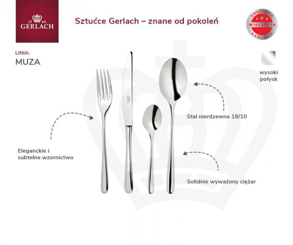 Firma Gerlach udziela wieczystej gwarancji na wszystkie sztućce Muza.