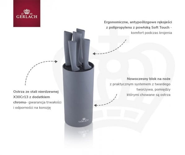 Oryginalny zestaw noży Gerlach 994 SMART GREY 5-elementowy
