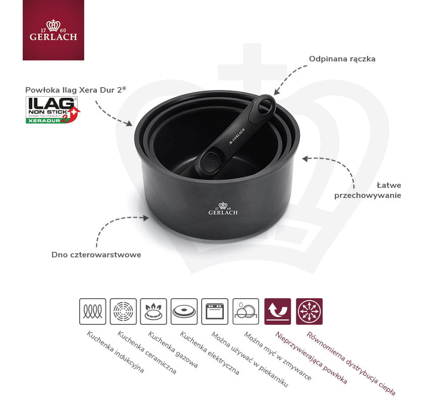 Gerlach Smart komplet garnków 3el. z odpinaną rączką NK 994