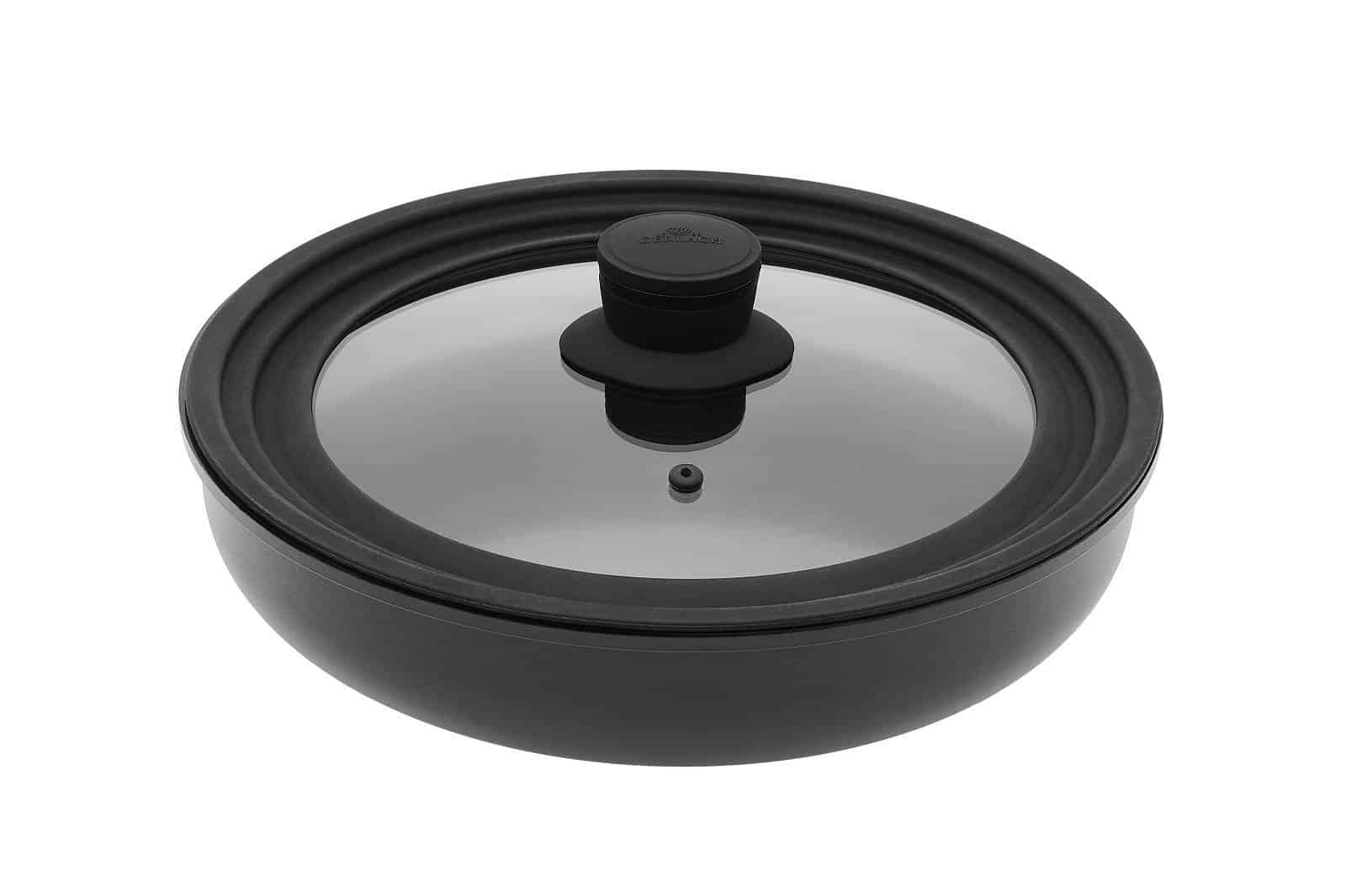 Pokrywka wykonana jest ze szkła hartowanego, dzięki czemu jest odporna na wysokie zmiany temperatur. Dodatkowo została ona wyposażona w odpowietrznik, który odprowadza nadmiar pary wodnej znajdujący się wewnątrz naczynia. Uchwyt pokrywki jest bardzo wygodny – nie nagrzewa się i jest bezpieczny.