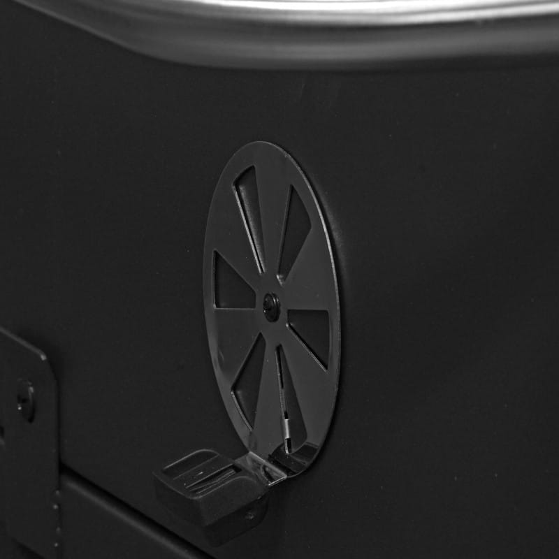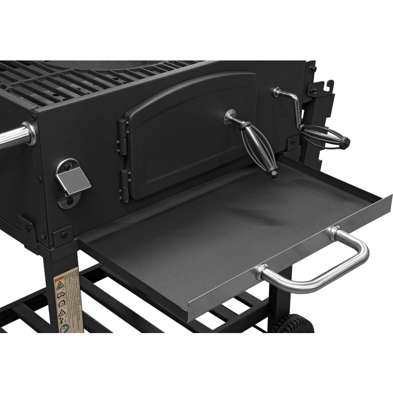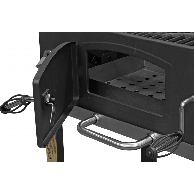- Zamykana klapa paleniskowa umożliwia łatwy i wygodny dostęp do misy paleniskowej, a wyciągana szuflada na popiół czyni czyszczenie grilla łatwiejszym i przyjemniejszym.