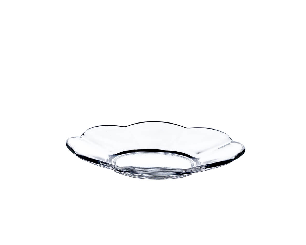 Szklany spodek do herbaty o falistym kształcie i średnicy ø110 mm. Bardzo dobrze komponuje się z klasycznymi szklankami z uchem lub koszyczkiem. Spodek szklany ma wiele zastosowań, oprócz funkcji ochronnej Twojego blatu przed wrzątkiem, stanowi również dobre miejsce na pozostawienie torebki po zaparzonej herbacie czy odłożenie łyżeczki.