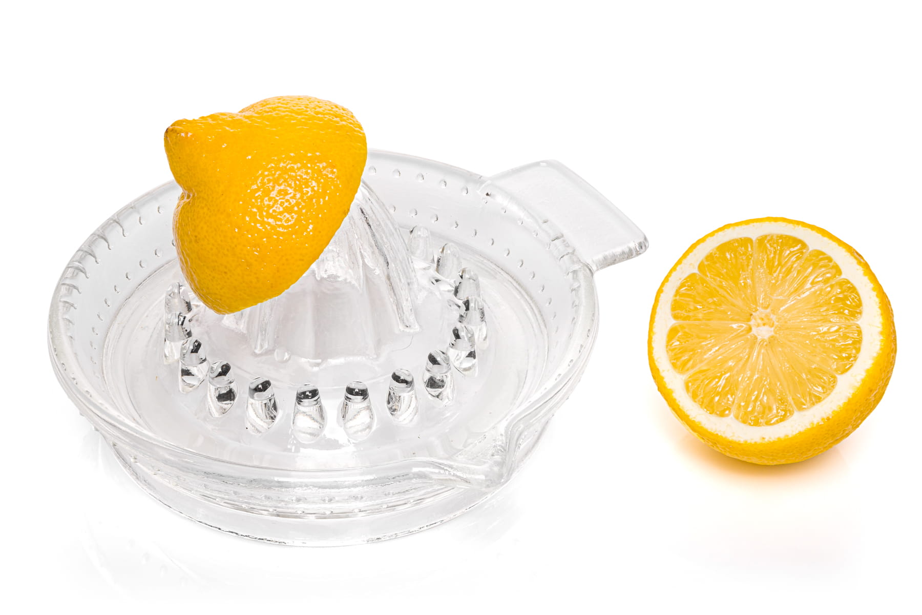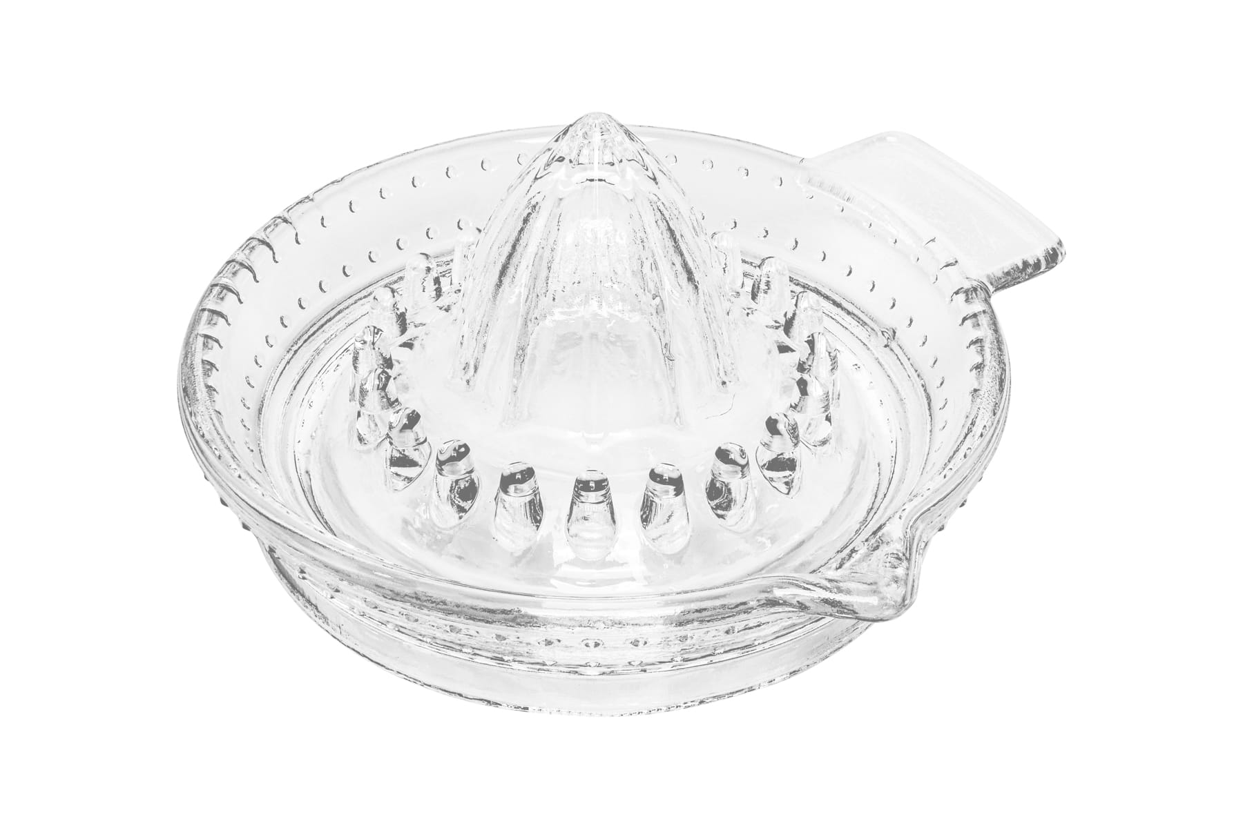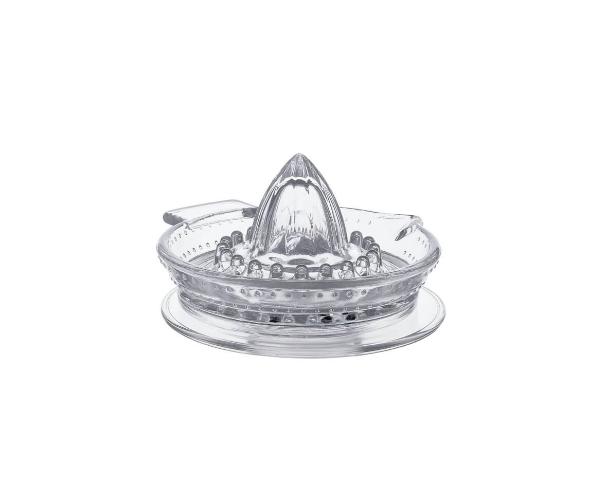 Solidny wyciskacz do cytrusów wykonany z grubego szkła.