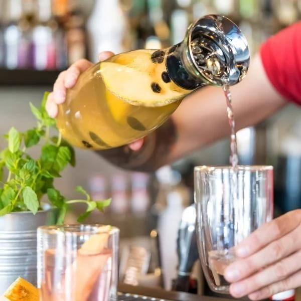 - wyposażony w specjalny korek z sitkiem, które zatrzymuje pestki itp.