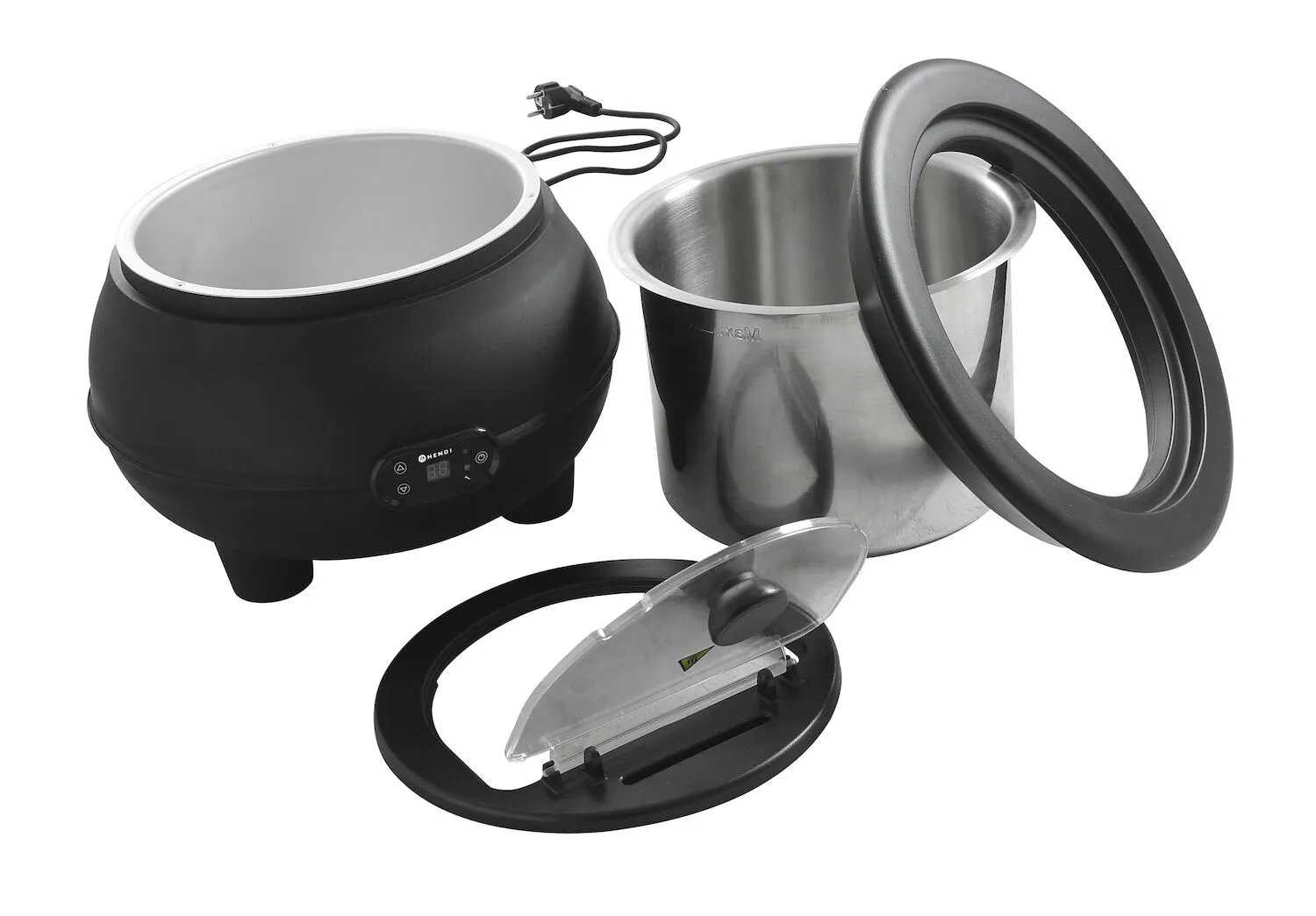 - cyfrowy panel sterujący z wyświetlaczem pokazujący na przemian temperaturę zadaną oraz temperaturę rzeczywistą zupy