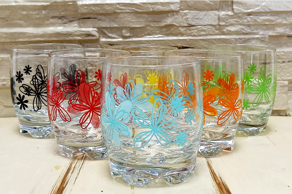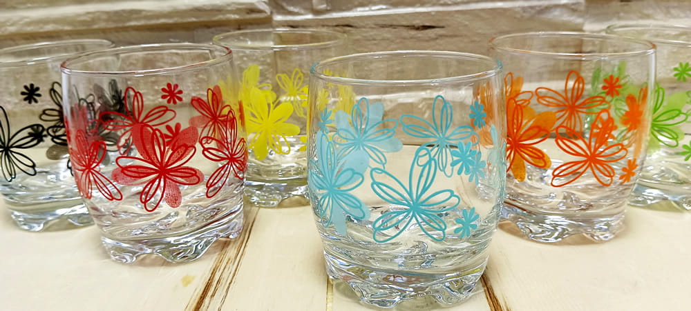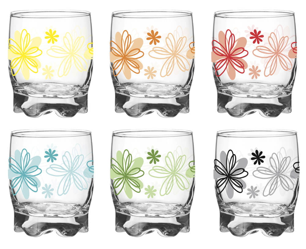 Komplet 6 szklanek niskich kolorowe kwiaty 250ml