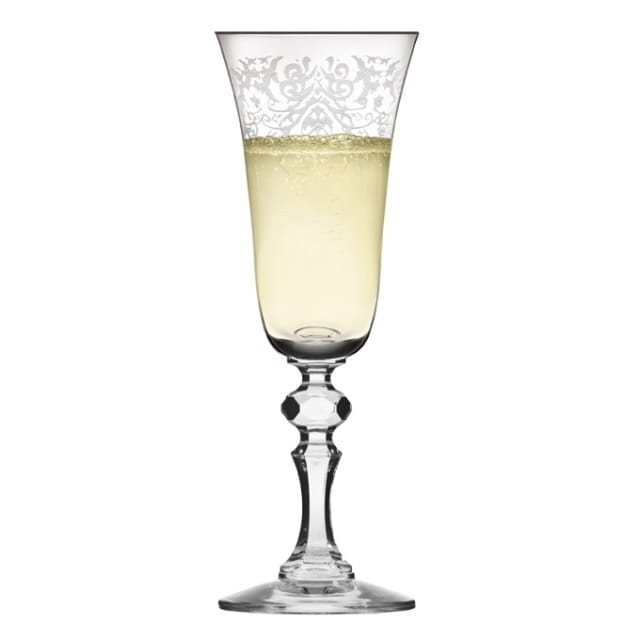 Wytworne, bogato zdobione kieliszki do serwowania szampana dodadzą stylu każdemu toastowi. Smukła, lekko rozchylona ku górze czarka pozwala delikatnie musować serwowanemu trunkowi aż do ostatniej kropli, uwalniając bogactwo jego aromatów. Delikatny, bezbarwny ornament zdobiący czarkę urzeka oryginalnością. Wysoka nóżka do trzymania, ozdobiona detalem przywodzącym skojarzenia z diamentem nie tylko pięknie się prezentuje, ale także zapobiega ogrzewaniu trunku. Idealnie przejrzyste szkło Crystalline pięknie rozprasza światło i daje wyjątkowy efekt wizualny, ponadto jest bardziej trwałe na matowienie czy uszkodzenia mechaniczne. To doskonały pomysł na prezent ślubny lub na inną, wyjątkową okazję.