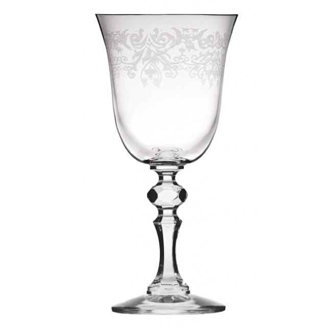 Wytworne kieliszki do serwowania czerwonego wina zwracają uwagę nie tylko idealnymi proporcjami, ale i oryginalnym zdobieniem. Dzięki swojemu designowi są perfekcyjną ozdobą każdego stołu, niezależnie od jego aranżacji. Ozdobiona bezbarwnym ornamentem czarka w kształcie tulipana, płynnie połączona z nóżką ozdobioną formowanym na kształt diamentu detalem urzeka elegancją zawartą w każdym szczególe i doskonale będzie prezentować się zarówno w klasycznych, jak i nowoczesnych wnętrzach. Ozdobna nóżka do trzymania nie tylko pięknie się prezentuje, ale także zapobiega ogrzewaniu trunku. Szkło Crystalline, z którego wykonano kieliszki wydobywa szlachetną barwę wina jednocześnie zapewniając odporność na uszkodzenia i matowienie.