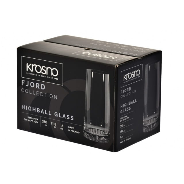 Eleganckie szklanki do napojów z linii Fjord to ciekawe połączenie nowoczesnego kształtu z nietuzinkową i wyrazistą, chropowatą strukturą w dnie, przywodzącą na myśl kryształki lodu. Wysokie szklanki do wody lub soku Fjord KROSNO mają 160mm wysokości i 75mm średnicy w najszerszym miejscu. Szkło Crystalline, z którego wykonano zestaw szklanek, wydobywa szlachetną barwę napoju, dzięki wyjątkowemu efektowi odbijania refleksów świetlnych, a także sprawia, że szklanki są niezwykle odporne na matowienie czy uszkodzenia mechaniczne. Szklanka z grubym dnem i o solidnych ściankach będzie doskonała zwłaszcza do serwowania drinków i koktajli, ale także do innych zimnych napojów, wody czy soku. Te szklanki są świetnym pomysłem na prezent szczególnie w połączeniu z dzbankiem lub szklankami do whisky z kolekcji FJORD. Nadają się do mycia w zmywarce.