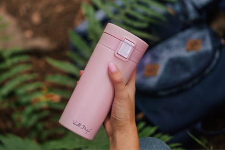 Decydując się na kubek termiczny Fuori, mamy możliwość wybrania naczynia w odpowiadającym nam wariancie kolorystycznym. Dostępne kolory to biały, różowy, granatowy, zielony, grafitowy, miętowy, stalowy matowy i czarny rose gold – każdy znajdzie coś dla siebie. Otwarcie kubka przy pomocy kciuka jest niezwykle proste, a przed przypadkowym rozlaniem napoju skutecznie chroni przycisk z blokadą.