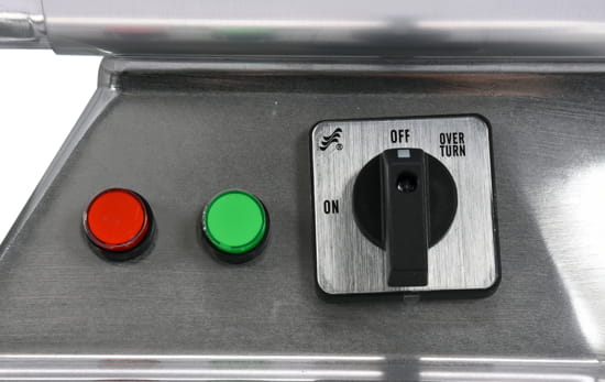 Maszynka posiada dodatkowe zabezpieczenie przeciw przeciążeniowe wyłączające urządzenia w przypadku zablokowania układu tnącego. Natomiast dodatkowy wyłącznik bezpieczeństwa umożliwia szybkie wyłączenie wilka w nagłym przypadku.