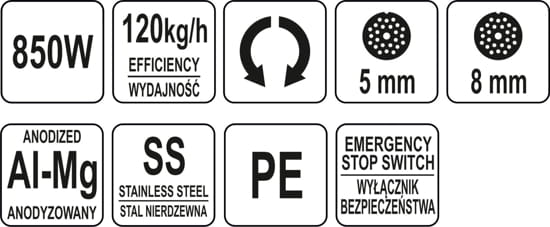 Wilk marki YATO posiada silnik o mocy 1100W, który umożliwia zmielenie 220kg mięsa w ciągu godziny. Dodatkowo posiada funkcję rewersu co znacząco ułatwia odkręcenie sitka i wyciągnięcie całego mechanizmu tnącego.
