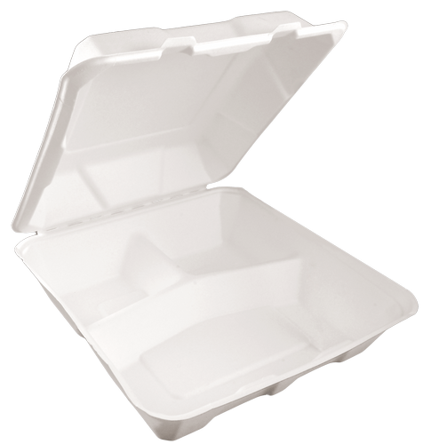 Menu box 3-dzielny z pulpy trzciny cukrowej do ciepłych i zimnych dań.