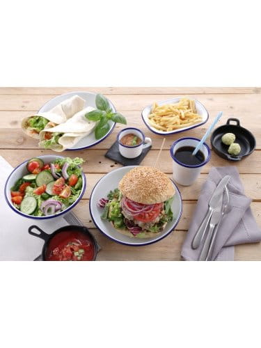 – Stal pokryta białą emalią z delikatnym niebieskim brzegiem