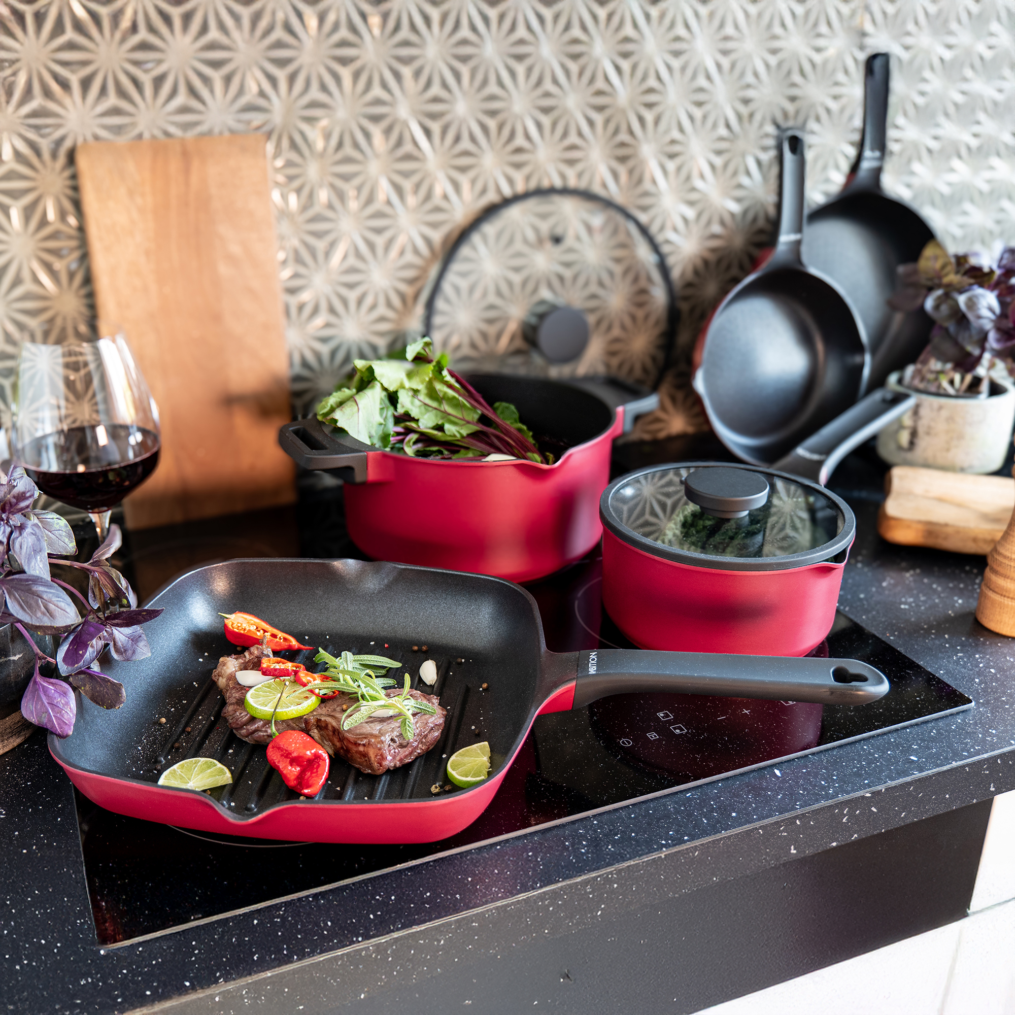 Patelnia Noel o średnicy 26 cm to praktyczne naczynie wykonane z odkuwanego aluminium, które szybko i równomiernie się nagrzewa oraz długo utrzymuje ciepło. Wnętrze pokryto powłoką Qualum Basic o właściwościach nieprzywierających, co ułatwia smażenie i czyszczenie. Dzięki solidnemu dnu indukcyjnemu patelnia nadaje się do wszystkich rodzajów kuchenek, także indukcyjnych. Wygodny uchwyt Soft Touch dobrze leży w dłoni i zwiększa komfort użytkowania. Modne perłowe wykończenie w kolorze Transformative Teal sprawia, że patelnia łączy funkcjonalność z nowoczesnym wyglądem.