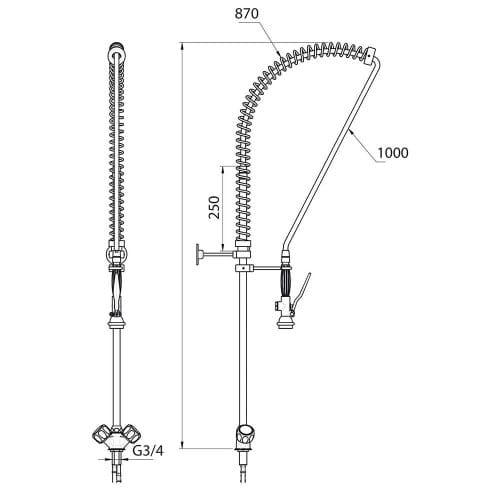 - bateria zlewozmywakowa stojąca, 1-otworowa ze spryskiwaczem