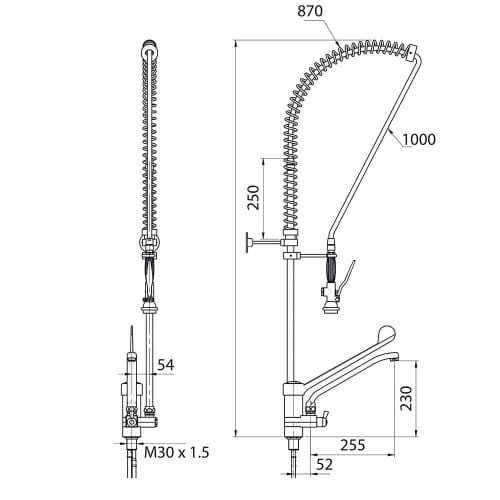 - bateria zlewozmywakowa stojąca, jednootworowa ze spryskiwaczem i wylewką łokciową