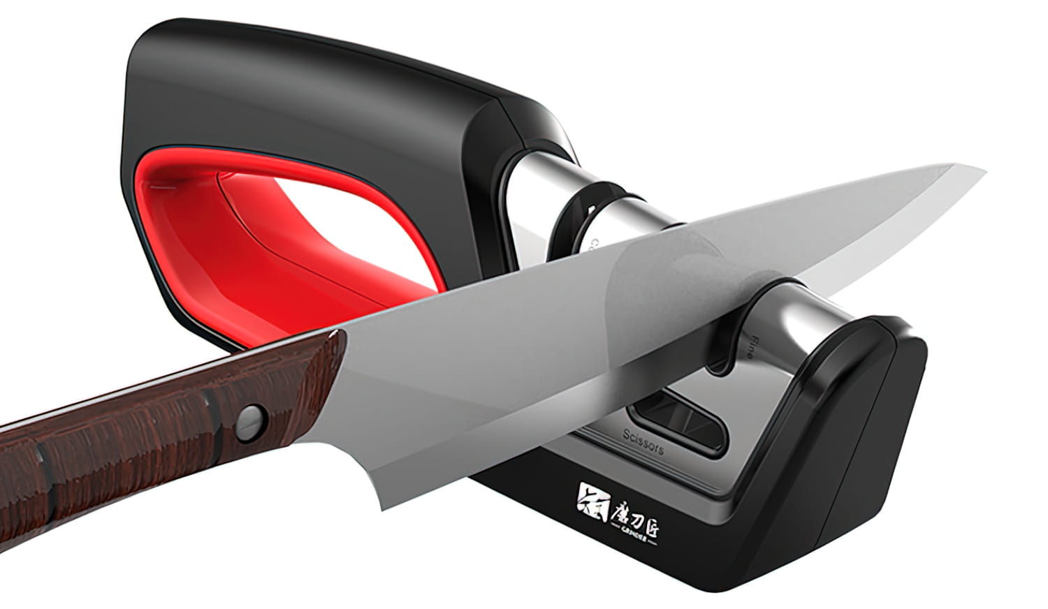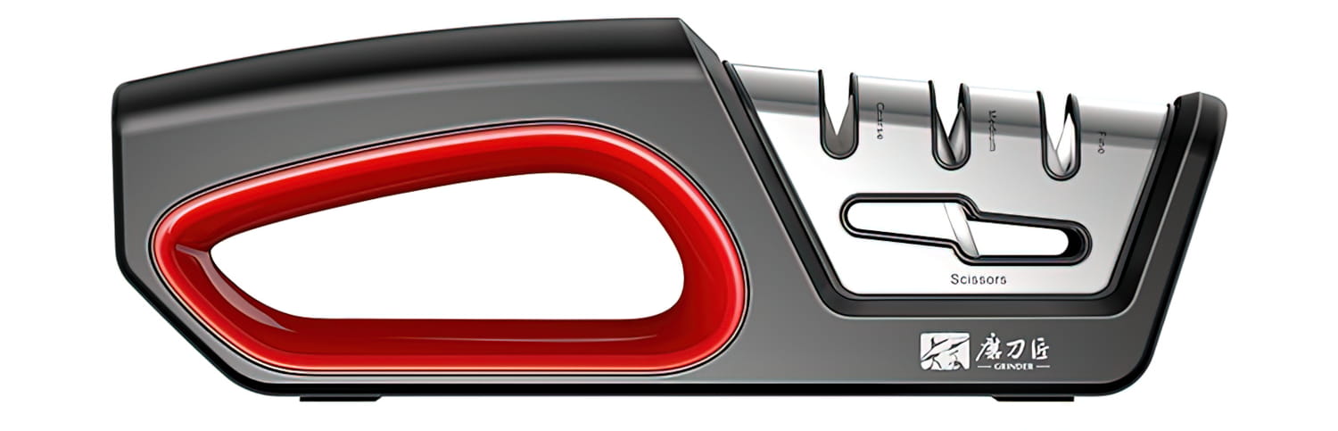 Ręczna ostrzałka do noży z trzema stopniami ostrzenia - ostrzenie wstępne, ostrzenie właściwe i wygładzanie krawędzi tnącej. Dodatkową zaletą jest ostrzenie nożyczek.