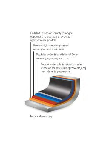 - profesjonalna patelnia wykonana z twardego odlewu aluminium, pokryte powłoką tytanową z powierzchnią nieprzywierającą