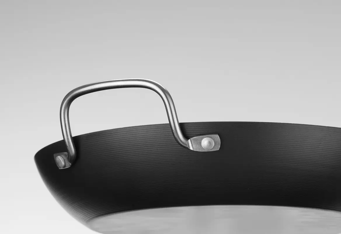 Patelnia wykonana ze stali węglowej. Dwa uchwyty wykonane ze stali nierdzewnej. Może być używana w piekarniku w temperaturze do 250°C.