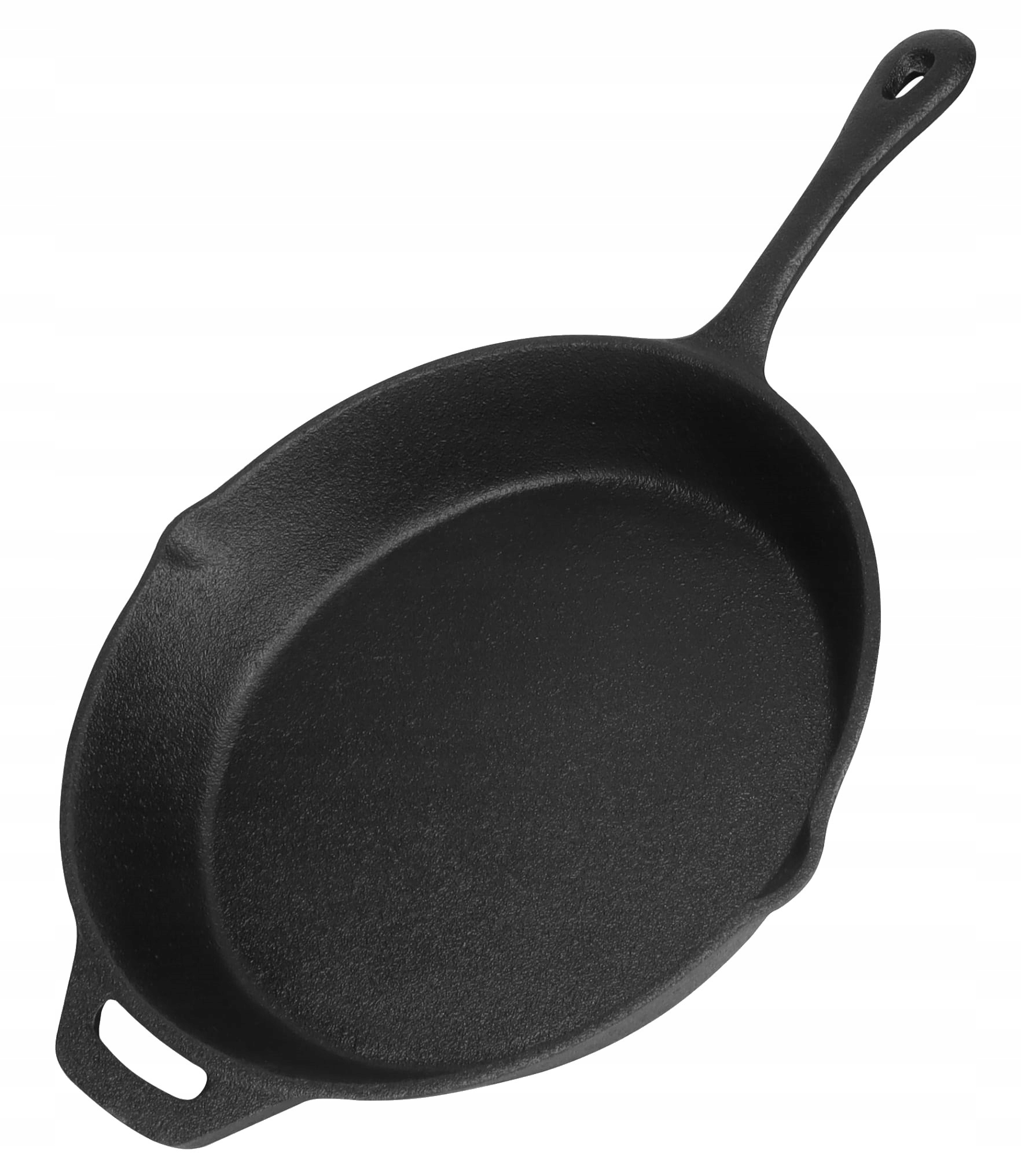 CIĘŻKA MASYWNA PATELNIA ŻELIWNA Ø 26 cm ze szklaną pokrywką