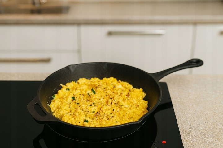 Patelnia jest fabrycznie czerniona, czyli wypalana w tłuszczu co zapewnia żeliwu impregnację i zabezpiecza przed przywieraniem potraw.
