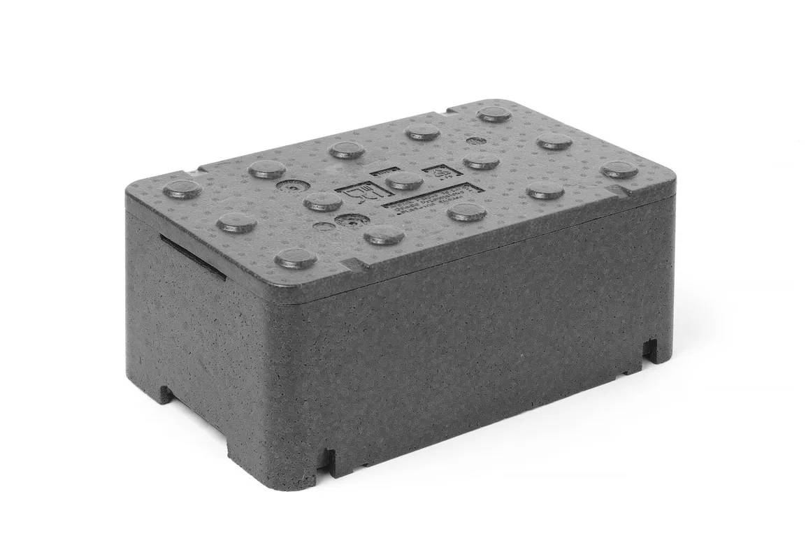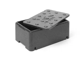 Pojemnik termoizolacyjny z dopasowaną pokrywką wykonany z piocelanu czarnego Przeznaczony do transportu i długotrwałego przechowywania każdego rodzaju żywności w warunkach chłodzenia lub mrożenia Nadaje się do mycia w zmywarkach gastronomicznych