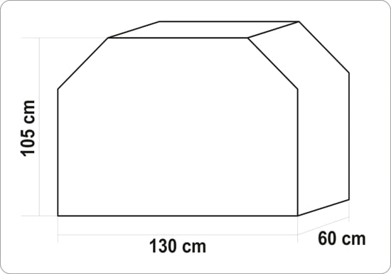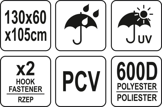 - wymiary rozłożonego pokrowca: 130 x 60 x 105cm (długość x szerokość x wysokość)